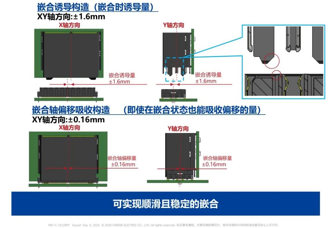 1 支持高速傳輸(28 + Gbps) 2 高密度: 50差分對/inch(224芯) 3 浮動構(gòu)造: 可以在同一基板上實裝多個連接器 4 選型 芯數(shù):84芯、152芯、224芯 對應(yīng)PCI Express 4.0/5.0