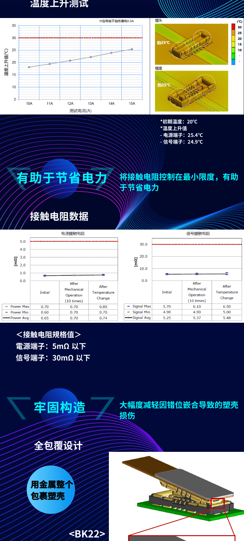 【產(chǎn)品推薦】具有高達(dá)15A供電能力全包覆、電源?信號復(fù)合、板對FPC連接器-BK22系列