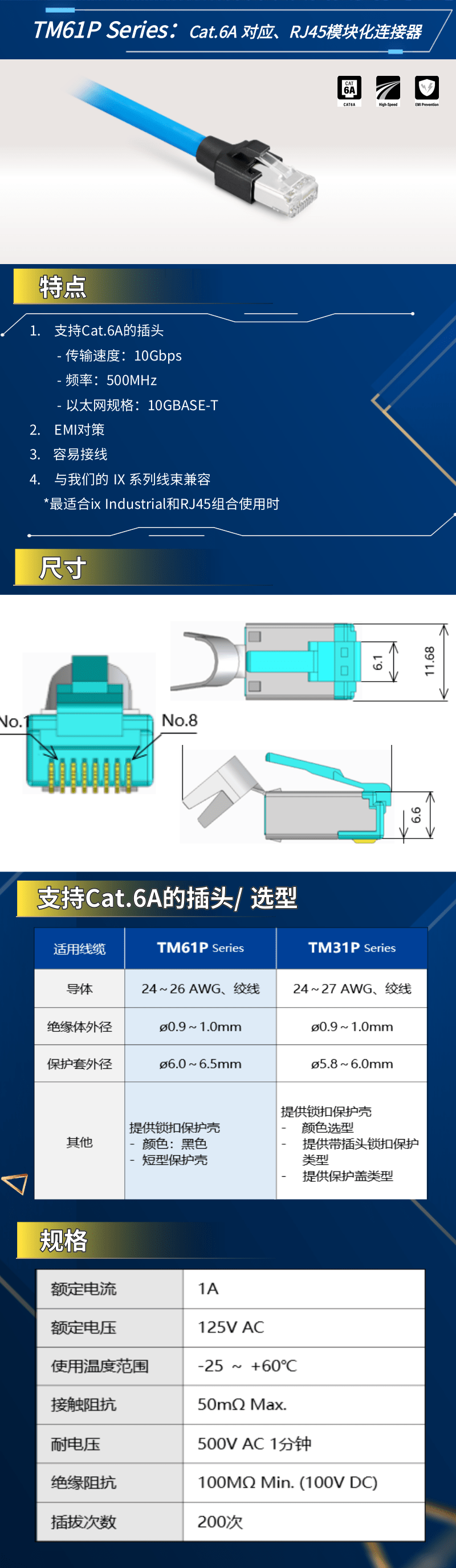 【新品發(fā)布】Cat.6A 對應(yīng)、RJ45模塊化連接器TM61P